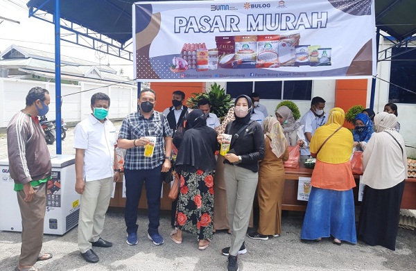 Kali ini Badan Usaha Logistik (Bulog) menyelenggarakan Pasar Murah di Kantor wilayah Bulog Jalan M. Yamin Palu, Selasa (8/3/2022).