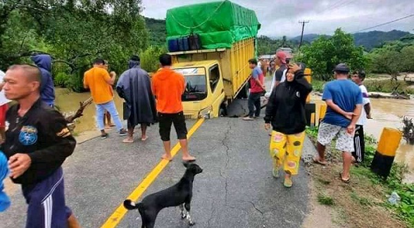 PALUEKSPRES, TOLITOLI– Jalan trans Sulawesi yang menghubungkan antara Kabupaten Tolitoli dan Kabupaten Buol terputus usai diterjang banjir bandang, setelah wilayah tersebut diguyur hujan lebat pada Selasa malam (22/3/2022) hingga Rabu dinihari (23/3/2022).