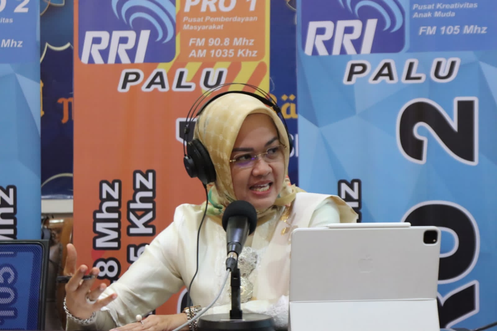 PALUEKSPRES, PALU- Ketua TP-PKK Kota Palu, Diah Pupita, S.AP menjadi narasumber dalam Dialog Khusus yang diselenggarakan oleh RRI Palu pada Kamis, 21 April 2022 di studio setempat.