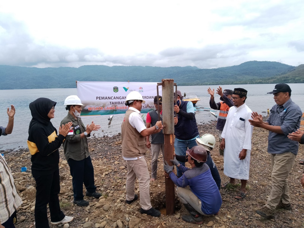 PT Vale memfasilitasi Pemancangan Tiang Pertama Tambatan Perahu Wisata Laa Waa River Park, di Desa Matano, Sabtu (28/5/2022). Foto: Istimewa