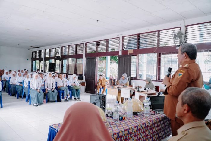Palu, PaluEkspres.com- Dinas Komunikasi, Informatika, Persandian dan Statistik Provinsi Sulawesi Tengah melalui Bidang Informasi dan Komunikasi Publik (IKP) menggelar sosialisasi literasi digital di Sekolah Menengah Atas (SMA) Negeri 7 Palu, Selasa, (9/7/2024), di ruang Auditorium Sekolah SMA Negeri 7 Palu jalan Baiya Raya, No. 29, Kecamatan Tawaeli.