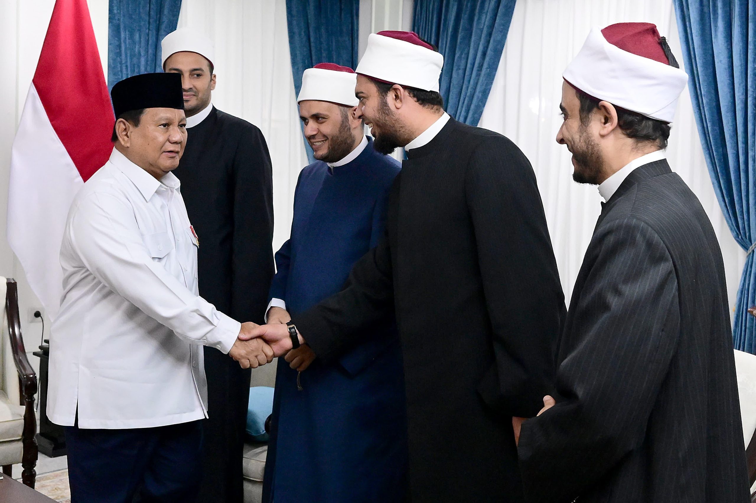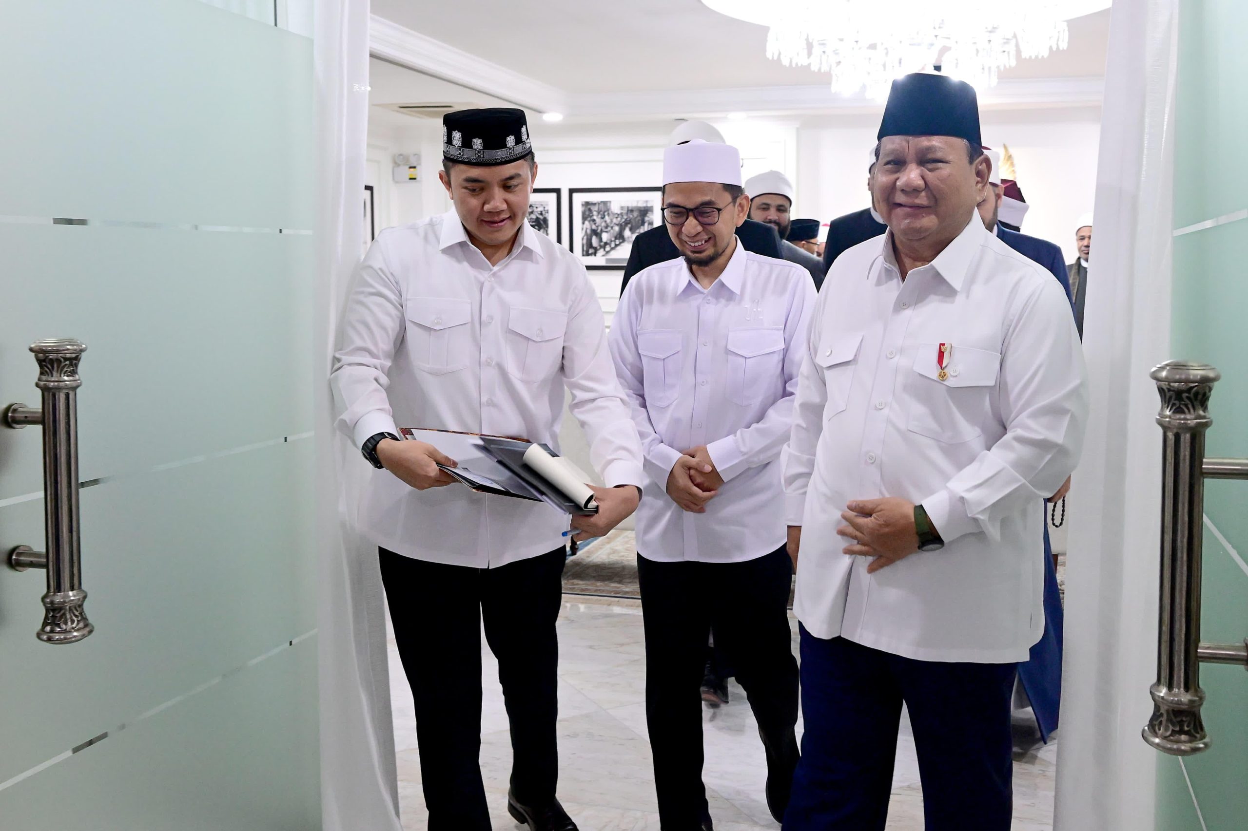 Presiden Prabowo menyambut langsung kedatangan para tamu di Ruang Majelis. Kepala Negara juga tampak berbincang hangat dengan Ustadz Adi Hidayat serta para ulama dan akademisi dari Al Azhar Kairo yang hadir, di antaranya Abdallah Mohamed Hemeida, Ibrahim Mohamed Anwar, Ahmed Hassan Ahmed, Mostafa Yassin Saleh, Rabei Ismail Elsobki, Maisara Galal Elbawab, Ahmed Elawady, Ahmed Abdelhalim, Ali Elsayed Attia, Ahmed Abdelazim Eltabak, serta Ustaz Mamduh Tirmidzi.