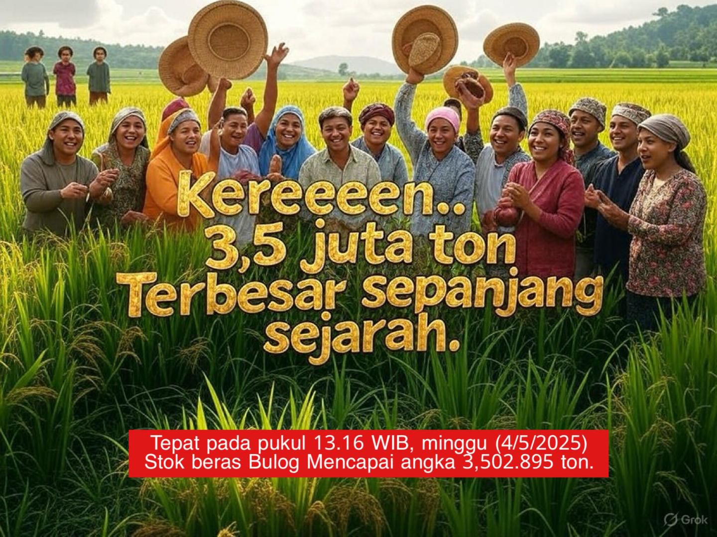 JAKARTA, PALUEKSPRES.COM – Stok cadangan beras pemerintah mencatatkan rekor tertinggi dalam 57 tahun terakhir. Tepat pada pukul 13.16 WIB, minggu (4/5/2025) stok gudang Bulog mencapai angka 3,502.895 ton. Menteri Pertanian (Mentan) Andi Amran Sulaiman menyebut pencapaian ini sebagai tonggak penting dalam sejarah ketahanan pangan nasional, sekaligus bukti keberhasilan kerja keras petani dan efektivitas kebijakan pemerintah yang tepat sasaran.