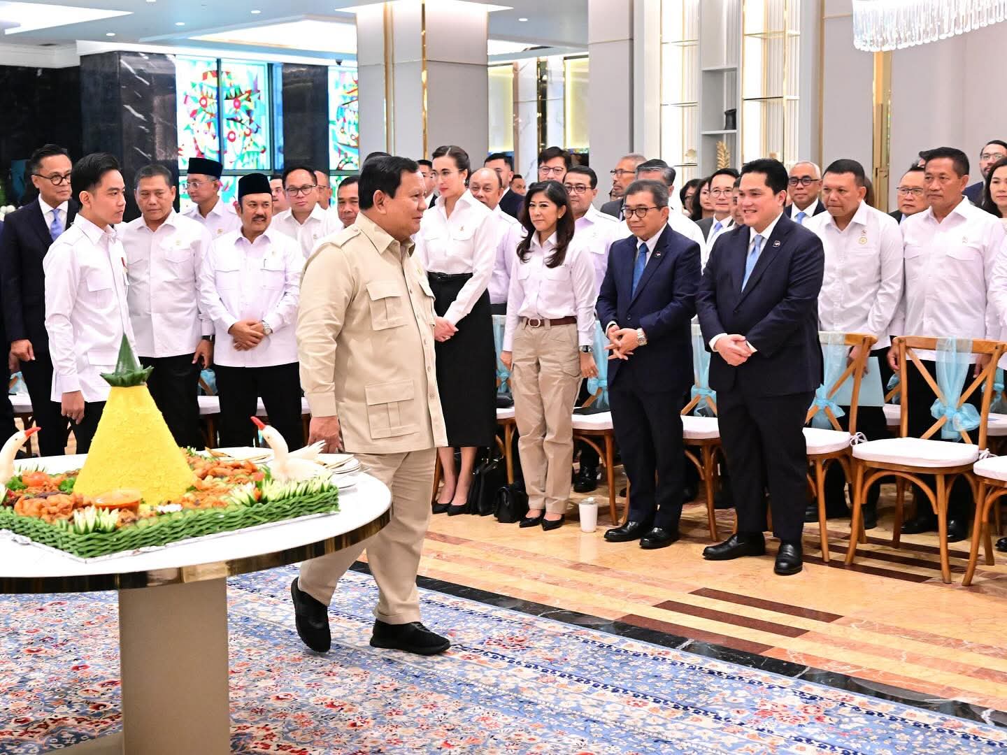 Acara dimulai dengan laporan singkat dari Kepala BPI Danantara Rosan Roeslani, dilanjutkan doa bersama yang dipimpin oleh Menteri Agama Nasaruddin Umar, lalu pemotongan tumpeng oleh Presiden Prabowo yang kemudian diserahkan kepada Kepala BPI Danantara sebagai bentuk syukur.
