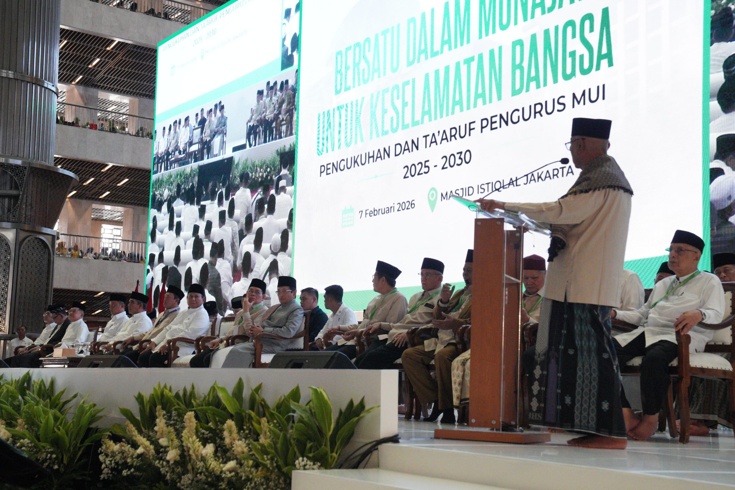 Jakarta, PaluEkspres.com — Presiden Republik Indonesia Prabowo Subianto menghadiri dan menyaksikan langsung pengukuhan kepengurusan Majelis Ulama Indonesia (MUI) masa khidmat 2025–2030 yang digelar di Masjid Istiqlal, Jakarta, Sabtu (7/2).