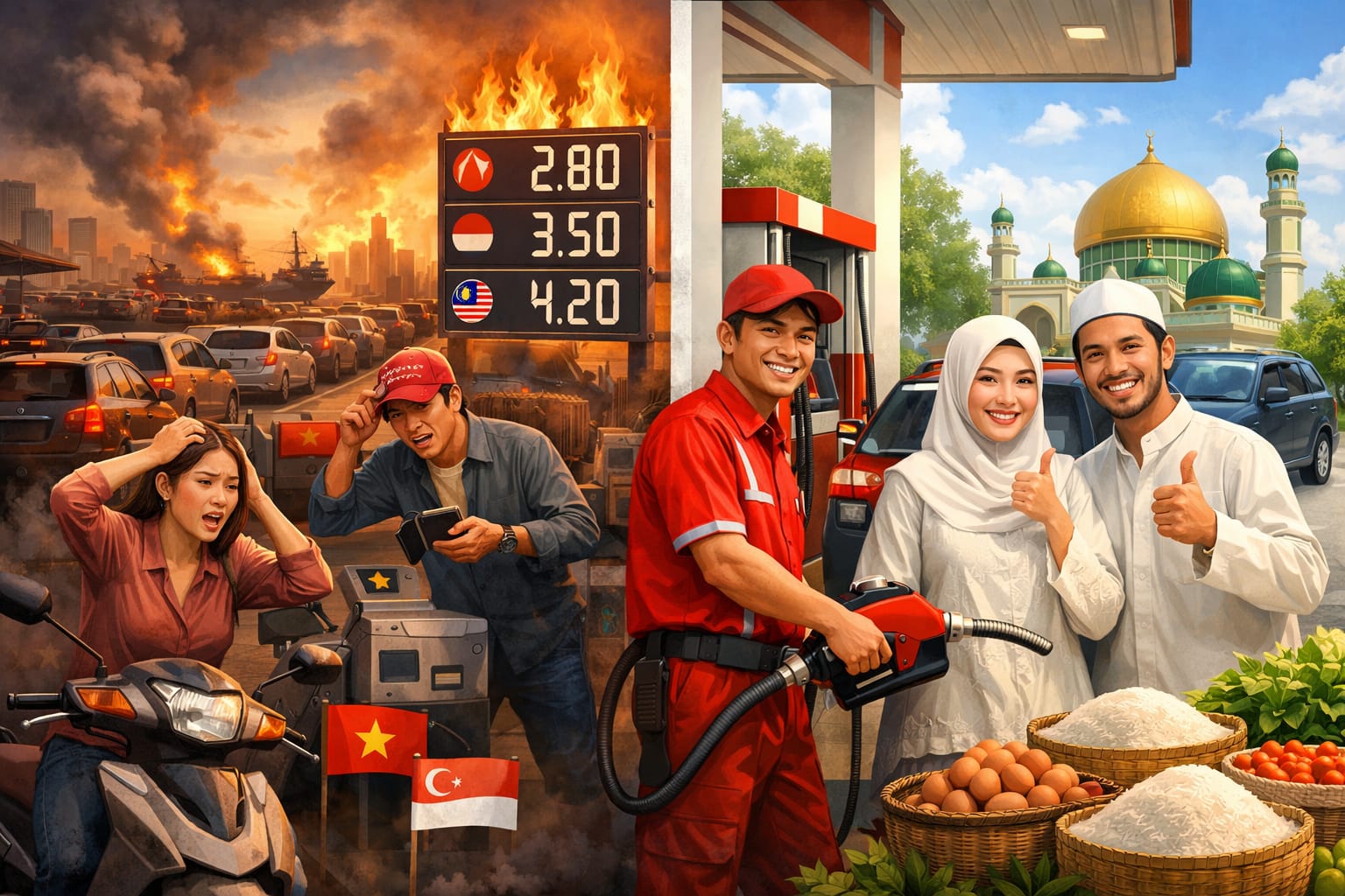 Di Vietnam misalnya, harga BBM telah melonjak lebih dari dua kali lipat sejak 26 Februari 2026. Demikian juga di Singapura, kenaikan harga BBM memicu tekanan ekonomi bagi masyarakat dan sektor transportasi di negara tersebut. Di Malaysia, harga BBM nonsubsidi telah naik beruntun dalam dua pekan terakhir.